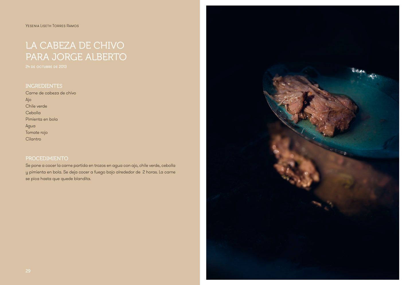 Cuando se hace un recetario para la memoria, ¿qué es lo que se quiere recordar? ¿Qué es lo que se quiere guardar y revivir? Se quiere recordar al hijo que se fue
